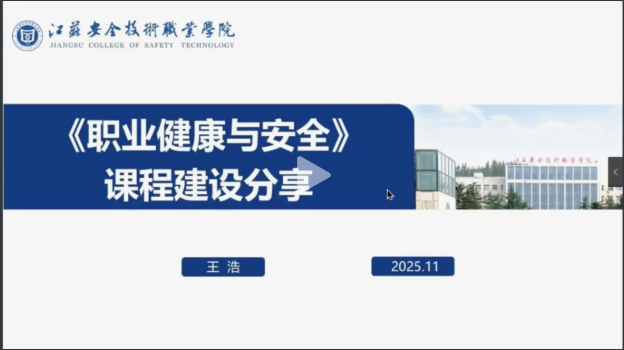 江苏安全技术职业学院王浩团队展示《职业健康与安全》课程建设经验,围绕“职业精神+安全意识”双主线,构建“岗课赛证”融合的思政育人模式;