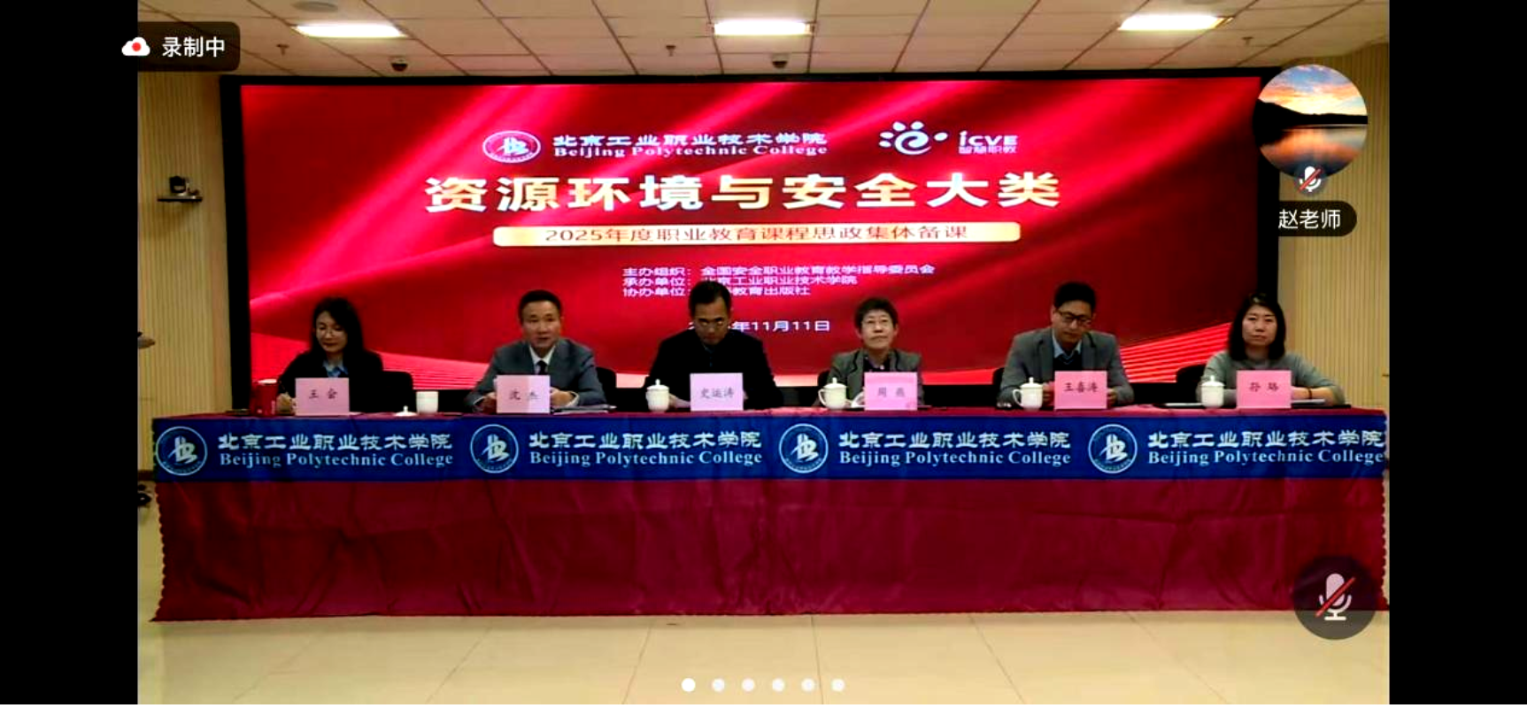 总结展望,聚力前行。本次会议紧扣教育部关于职业教育课程思政集体备课的工作要求,通过领导致辞明方向、专家讲座拓思路、集体备课促共享,为全国资源环境与安全大类院校搭建了互学互鉴的平台。北京工业职业技术学院作为承办方表示,将持续深化课程思政建设,推动“产教融合+课程思政”协同创新,为培养更多德技并修的高素质安全技术技能人才贡献力量。