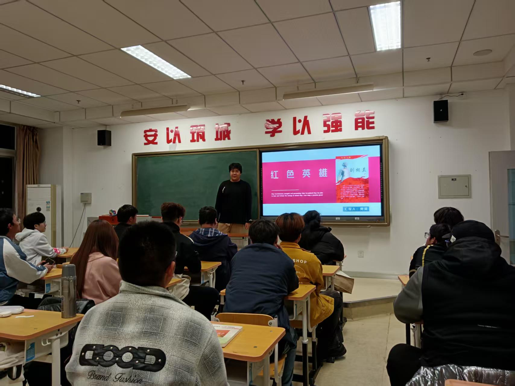同学们还通过选择抗日英雄人物或身边的红色故事,以PPT展示的形式进行分享。同学们讲述杨靖宇将军冰天雪地中坚守抗日前线、壮烈殉国的事迹,分享赵一曼女士面对酷刑坚贞不屈的气节,还有同学讲述身边老党员参与革命、建设家乡的革命经历。同学们用真挚的语言、丰富的史料,生动还原英雄事迹、传递红色力量,让大家在聆听中感悟初心使命,汲取奋进动力。
