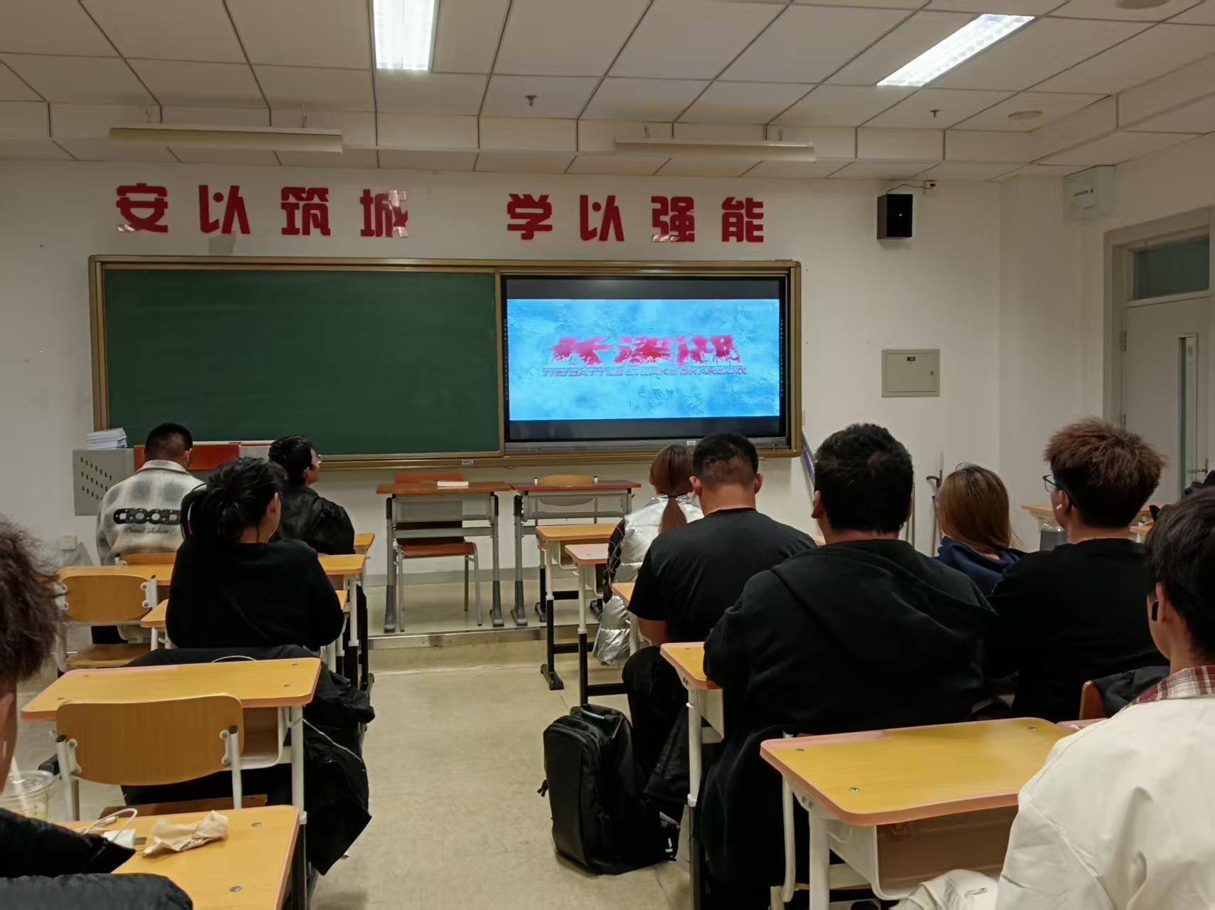 城市安全学院精选《觉醒年代》《长津湖》《我和我的祖国》等多部优质红色影片,组织各班集中观看。一幕幕震撼人心的历史场景、一个个鲜活生动的英雄形象,从新文化运动的思想觉醒到抗美援朝战场的浴血奋战,从国家重大历史时刻的全民同心到平凡人身上的家国情怀,让同学们在沉浸式观影中回望峥嵘岁月,深刻感悟先辈们的牺牲奉献与奋斗精神,进一步激发了爱国热情与责任担当。