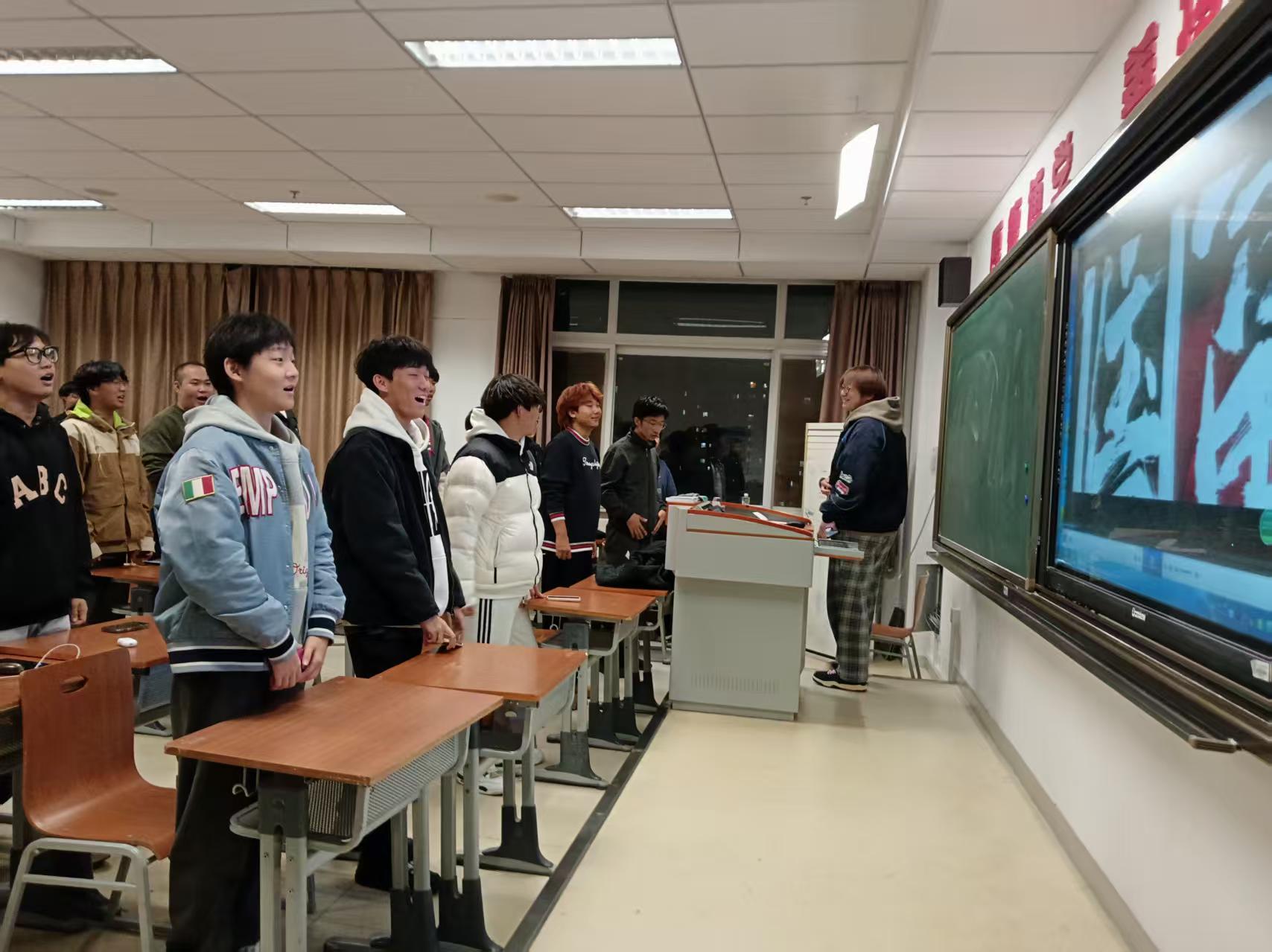 《没有共产党就没有新中国》、《歌唱祖国》、《我和我的祖国》等经典红色歌曲也响起在第二课堂的教室,参与同学学习传唱。伴随着激昂的旋律,同学们饱含深情地放声歌唱,歌声时而铿锵有力、时而悠扬婉转,既唱出了对革命先辈的敬仰,也抒发了对祖国母亲的热爱与祝福。真挚的歌声回荡在校园里,让大家在合唱中凝聚奋进力量,让红色旋律成为青春最美的底色。