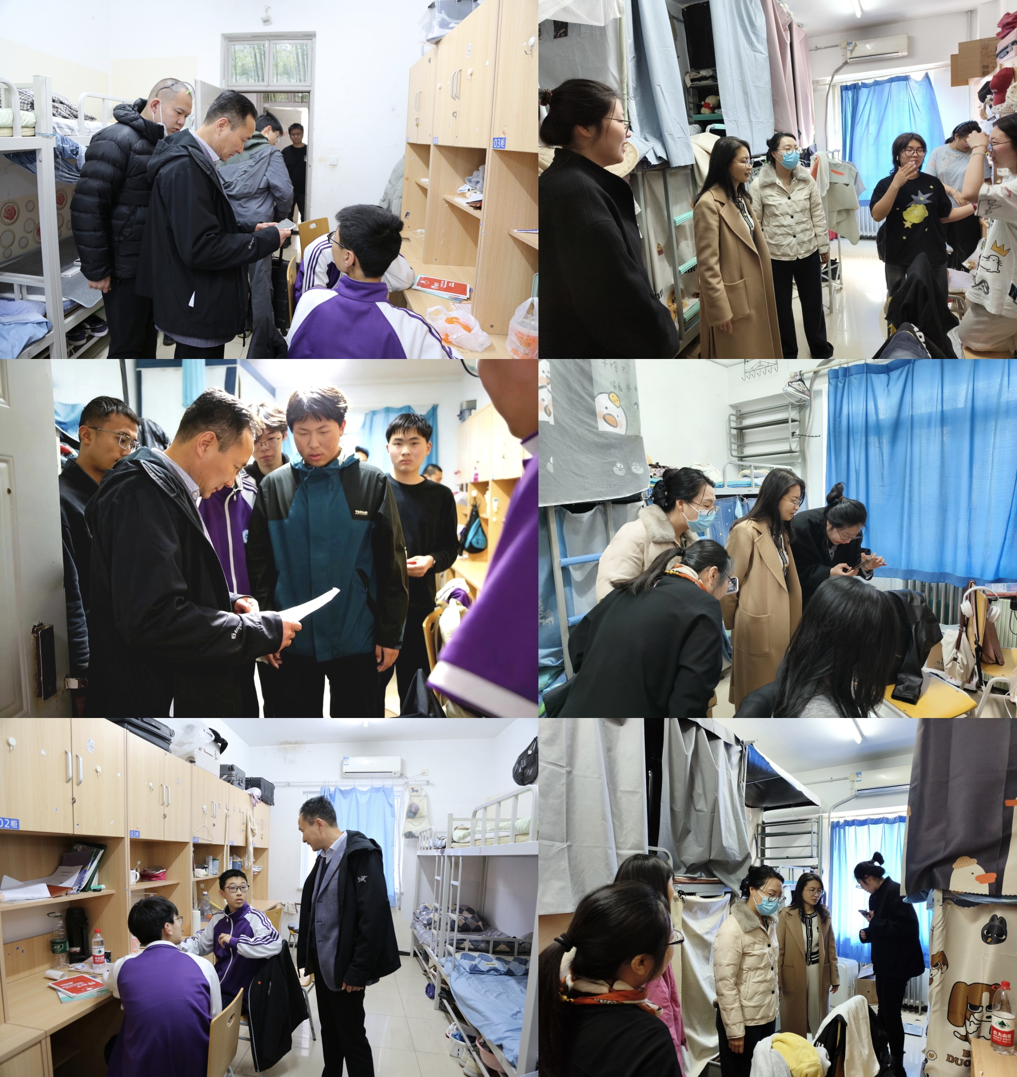 本次检查重点围绕宿舍地面整洁、物品摆放、大功率电器使用、通风消毒等情况进行检查。过程中,检查小组对各宿舍内务状况、安全规范落实情况进行查看。